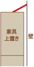 背の高い箱物(食器棚やタンス)の上に、重いものや壊れやすいものを置かないようにしましょう。 |