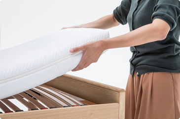 高温多湿の日本では、湿度がこもりやすく、特にマットレスとベースの間の湿気は特に心配です。