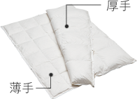カリモクの羽毛ふとんは、「厚手・薄手」の2枚重ねになっています。