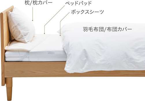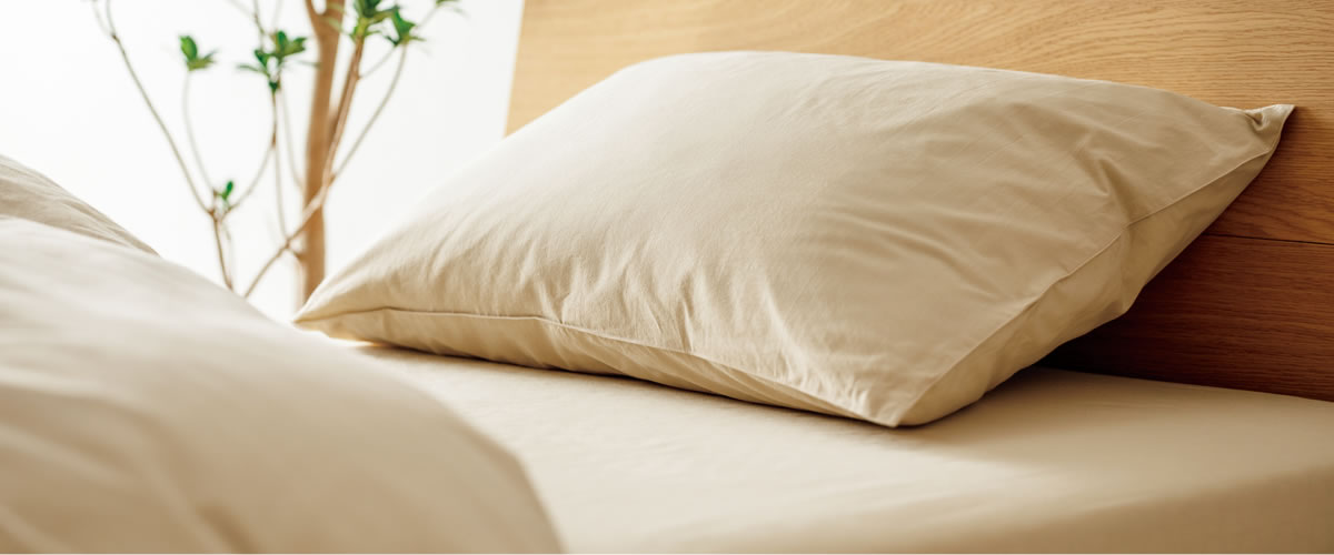 鳥種や飼育環境・選別にまで徹底的にこだわった高品質のダウンを使用しているので保温性に優れ、生地も目詰めの為の樹脂や薬品を一切使用しない綿100%を使用しており、吸湿性に優れています。睡眠中にかく汗を吸収・発散させて理想の寝床内温湿度(温度33℃・湿度50%)に近づけます。