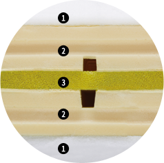 やわらかくて適度な反発力を持った、マットレス専用のモールドウレタン。高密度でやわらかく寝返りをサポートしながら身体へのフィット感も抜群です。