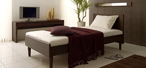 寝心地というよりは清潔感がポイント。奥さんは干せるからお布団好き。子供のベッドは布団が敷けるものを購入した。