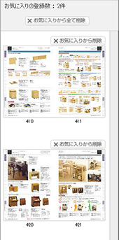 保存したお気に入りページを小さい画像で表示します。画像をクリックすると該当ページを表示します。また、お気に入りのページは、「マイバインダーに追加」ボタンでマイバインダーに登録されます。