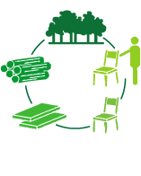 森林認証とは、木材が適切に管理された森林から伐採されたものであることを証明する仕組みのことです。カリモクは世界に2つある森林認証制度のFSCⓇとPEFCのCoC認証を取得しています。世界中に認証森林があり認証を受けた森林から切り出された木材で作られた製品だけに、認証を持った者だけがロゴマークを貼付することができます。