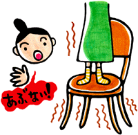 椅子の上に立ったり、飛び跳ねたりしないでください。 |