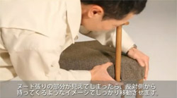 前面の角にある縫い目とヌード張りの縫い目を合わせて被せます。※留める作業は後ほど行います。