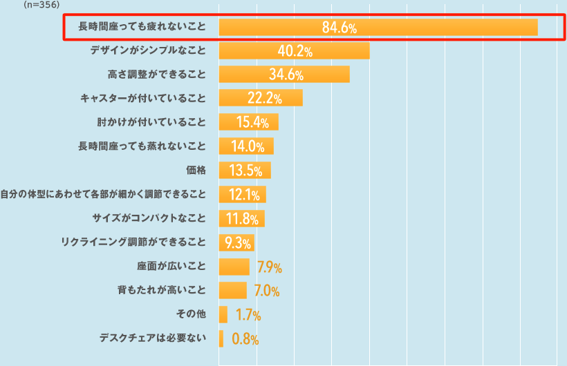 チェアに求めることは、「長時間座っても疲れないこと」が