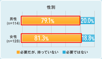 デスクを持っていなくても、男女とも約80%は必要性を感じている。