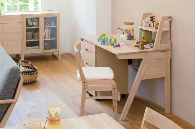 娘の小学校入学のために学習机を買うか悩んでいました。お友達の家で見て素敵だったので、すぐにショールームに行き即決めました。ピュアナチュールは見た目もかわいいですが、こどもが椅子に座るときに机の脚が邪魔にならないのもとってもいいです。机はリビングのおいているので少々存在感はありますが、じゅうたん(120×180)を敷くことでそこだけこどもの空間みたいにしています。ライトまでカリモクじゃなくてもと思いましたが、椅子のピンクを合わせてピンクにして大人っぽい机がかわいくなって正解でした。いっぱい勉強したり本を読んだりしてほしいなと思います。妹もいるのでまた絶対買います。私のPCデスクも買い替えたいなぁと思ってしまいました。