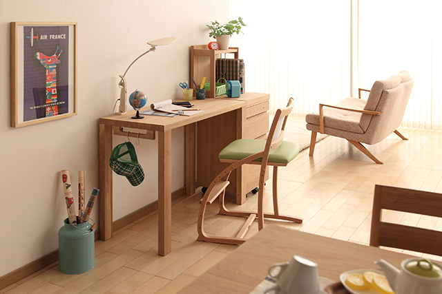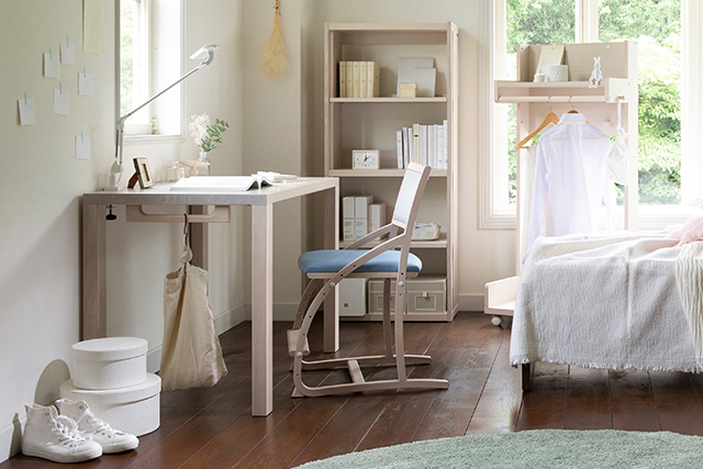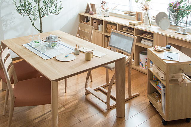 入学前から大人まで、ずっと使えるサポートチェア“クレシェ”。シンプルデザインだからダイニングにも置きやすく、幼児期から大人までをずっとサポート。入学前はダイニングテーブルでお絵かきや食事をしたり、入学後はデスクチェアとしてお使いいただけます。