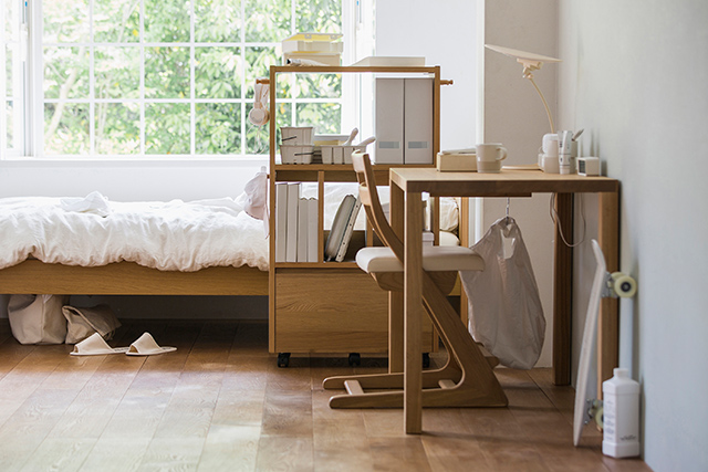 シートの高さや奥行調節のねじ穴をすべて内側に設け、すっきりしたデザインに。木質感を損なわず、インテリアに美しく馴染みます。