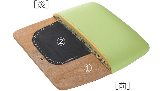 ②:シート後方部にはおしりにやさしい底突き感のないクッション構造を採用。大きくなってからの受験期など長時間座るのに最適です。