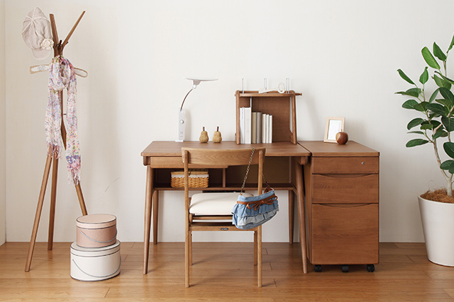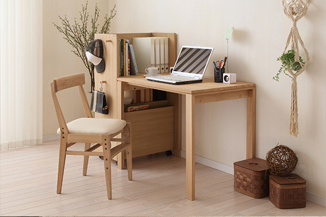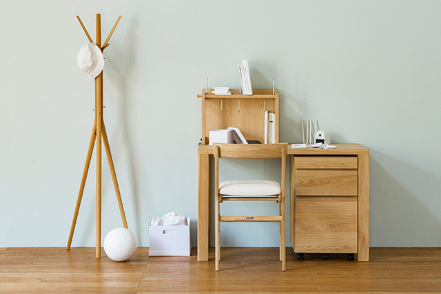 飽きのこないシンプルなデザインと身体にやさしい座面クッション構造を採用。座面の高さ(3段階)と奥行、足載せの高さ(2段階)の調節ができます。また、シートには汚れが付きにくく、落としやすい防汚加工の張地を採用。安心してお使いいただけます。