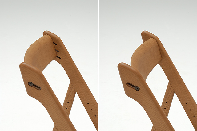 背モタレの高さと奥行きが、チェアに座った状態で調節できるので、お子さまの身体に合った最適なポジションが選べます。