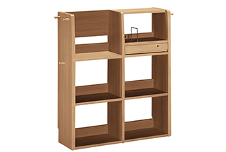 オープンスペースの棚板は可動式。収納物に合わせて縦使い、横使いに付け替えできます。