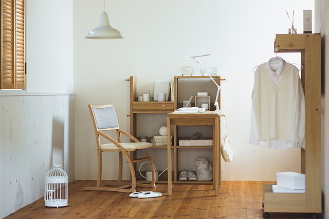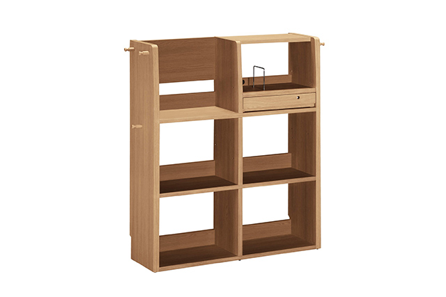 棚板2枚と引き出しを付け替えることでお子さまから大人までいつでもフィット。収納物の変化に対応し、マルチに活躍します。