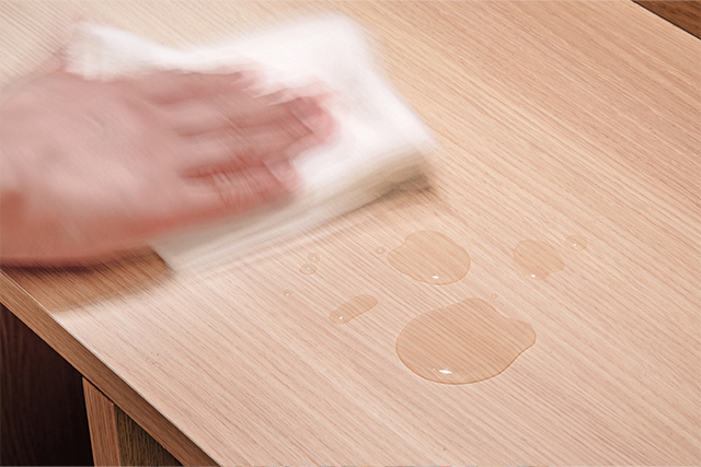 引き出し内面は、レアテックスを採用。硬く絞った雑巾でゴミや汚れをお掃除できます。