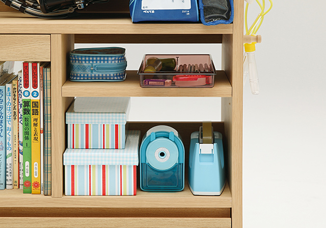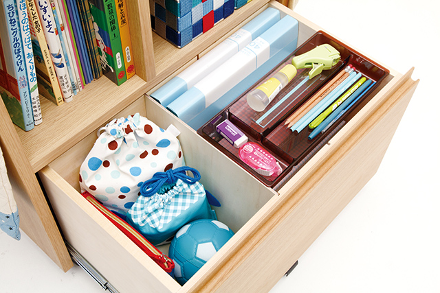 小スペースには、体操服やナフキン、ハンカチなどの収納に便利です。