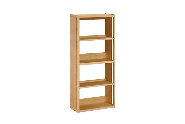 シンプルなデザインのオープンタイプの書棚。幅60cmのスリムなサイズ設計です。棚板は取り外し可能(1枚は固定)で、収納物に合わせて調整できます。