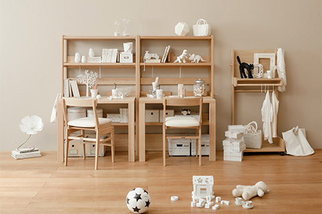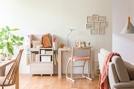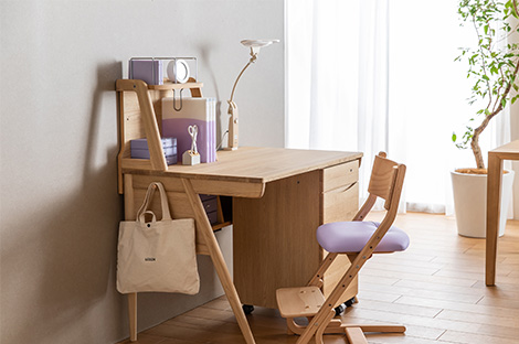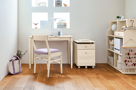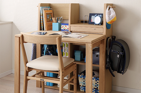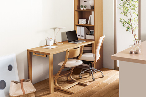 お部屋の広さやレイアウトに合わせて、まずぴったりサイズのデスクを選びましょう。収納するものや学習環境に合わせたアイテムセレクトや組み合わせが可能、兄弟姉妹のおそろいデスクにもおすすめです。