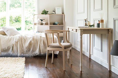 天板と脚が薄く、すっきりとしたデザインでありながら、天然木の温かみを感じられるデスクです。お部屋に圧迫感を与えず、どんなお部屋にも合わせやすいのが魅力です。