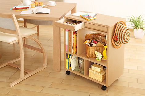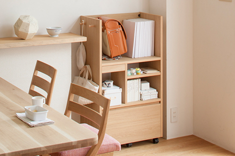 リビング学習のお困りごととして挙げられるのが「学用品の収納」。