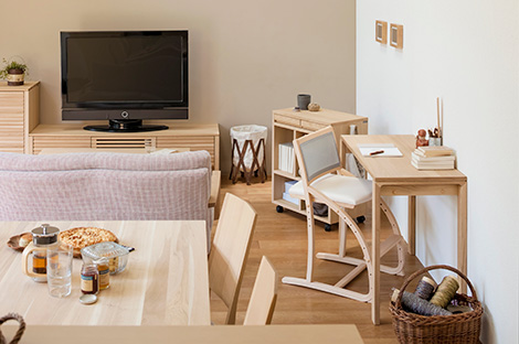 お部屋に余裕を生み出すコンパクトデスクは、リビングにもぴったり。最初はデスクとチェアだけのシンプルなセッティングで、すっきりとした快適環境を作ることでお部屋全体にも開放感が生まれます。