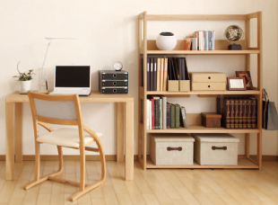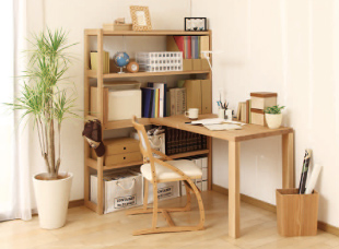 自由に選べる2タイプの書棚と、コンパクトサイズのデスクで、ずっとサポート
