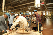 普段では見る事のできない家具の製造現場に入り、工場長自らが説明。製造工程の説明の合間に「木」の性質の説明を熱心にしていました。その上で「木」を扱う事への大変さを伝えていました。