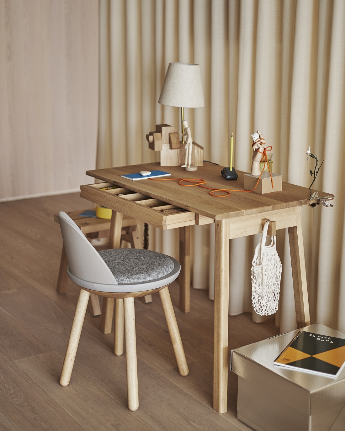 カリモク家具は、企業、地方自治体や教育機関、アーティストなど、業種を問わず様々なコラボレーションを積極的に実施しています。本展ではその中から7つのプロジェクトを、実際の製品を用いて紹介します。トラフ建築設計事務所との協業で生まれたCAPチェアや、大学発のベンチャー企業のfabulaが開発した新素材を用いたプロジェクトなど、「木とつくる幸せな暮らし」の実現を目指すカリモク家具にとってこれらのコラボレーションは、更なる技術力の向上と、木を用いたものづくりへの探究心を深めることへと繋がっています。