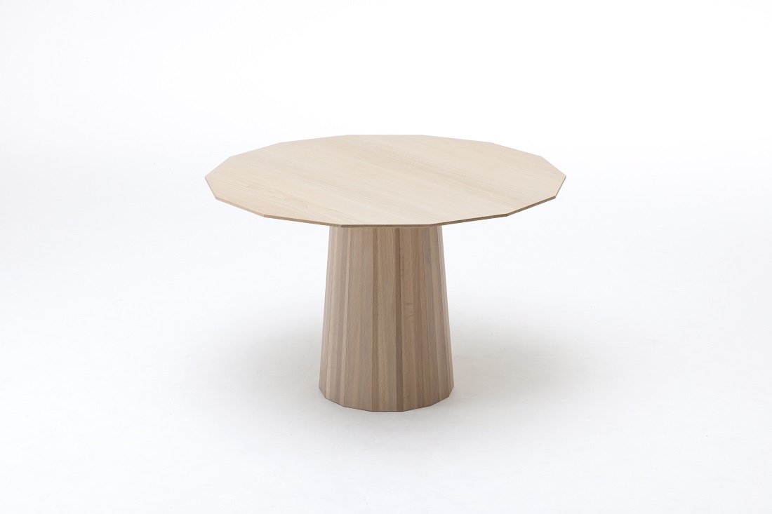 その現状に対して、カリモク家具は課題解決に向けた一つの方法として、家具用材として不向きとされてきた広葉樹の小径木や、針葉樹の積極的活用を推進しています。