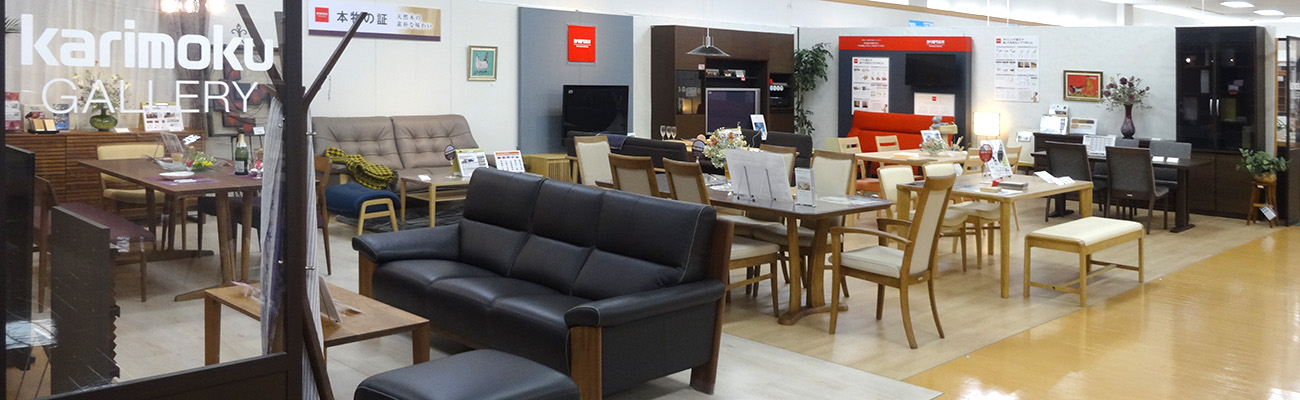 青森県八戸エリア最大級のカリモク家具の品揃えです。2階ライフスタイルフロアにて、カリモクギャラリーを展開しております。さまざまな間取りや生活シーンにより快適な暮らしをご提案いたします。皆様のご来店をお待ちしております。