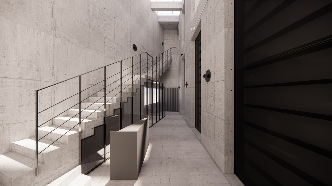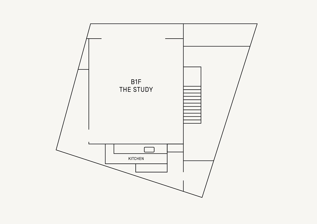 『Survey=調査』の活動をもとに展示を行うギャラリースペース。床面積77㎡、天井高5.2mの広々とした空間には、元々の建物のデザインを残したグリッドパターンの大きな窓から自然光が差し込みます。また建物の外装が放つコンクリートの素材感を活かし、内装にはコンクリートの色を意識した壁色や家具塗装の技術で調色された造作のパーツなど、建物がもつ力強さを引き出した明るくシンプルな空間です。