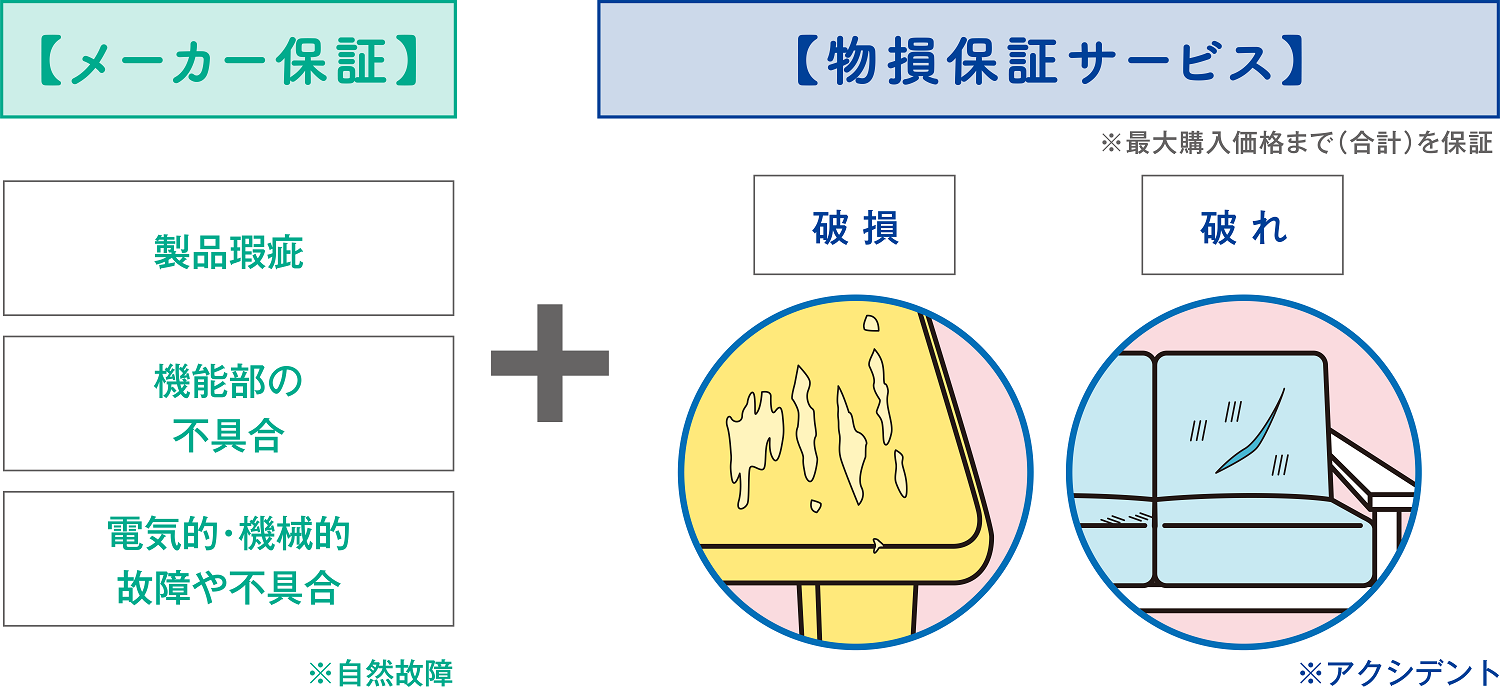 購入後3年間の予期せぬアクシデントによる家具の破損・汚損を保証