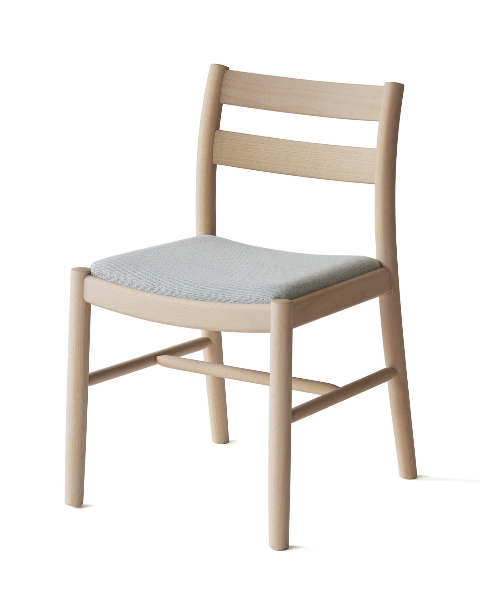 シンプルながらも愛らしいデザインが特徴のチェア。ブナ材ならではの曲げやすさを生かしたアームは、思わず触れたくなるような優しいフォルムです。背もたれのわずかな丸みが、座る際や移動させる際の手に心地よい温もりと安らぎをもたらします。さらに、シートは張り込み、板座、ペーパーコードの3種類をご用意。多様な生活環境にフィットする選択肢が魅力です。