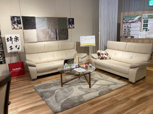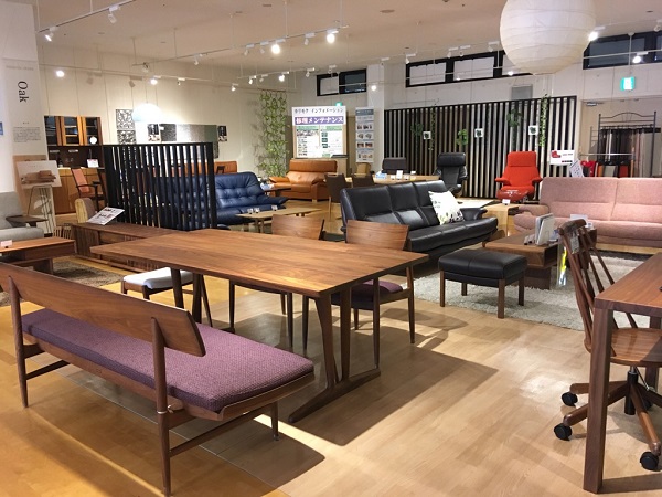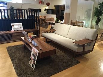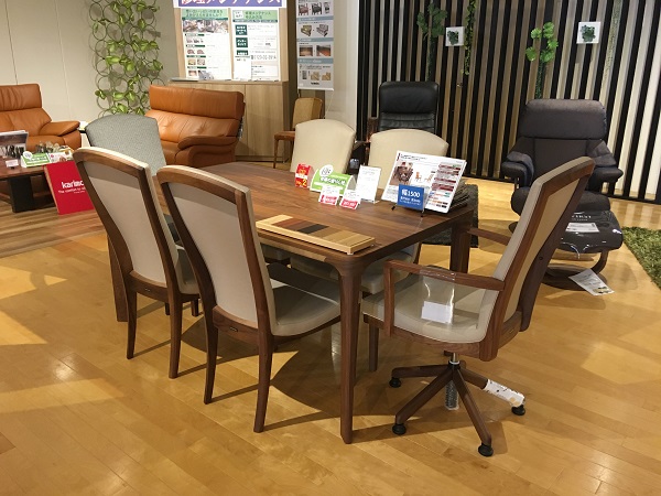 ★カリモクプレミアム樹種(ウォ-ルナット・チェリー)を中心にオーク材による展示を展開しています。
