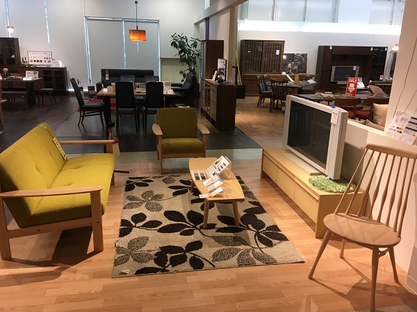 カリモクこだわりの座り心地研究モデルを展示。 落ち着いた雰囲気から明るい雰囲気まで幅広いコーディネートに対応いたします。