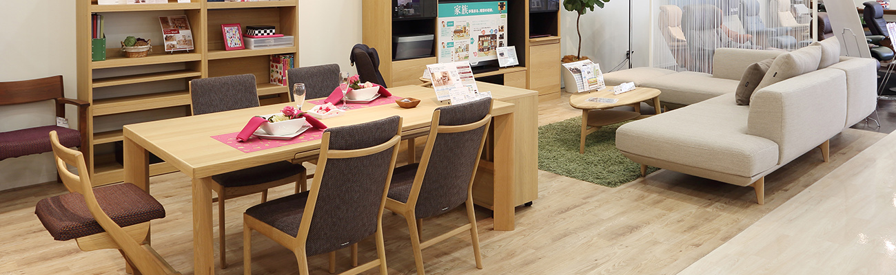 ショールーム内には家具へのこだわりがいっぱい。楽しみながら家具選びのポイントを知っていただけます。