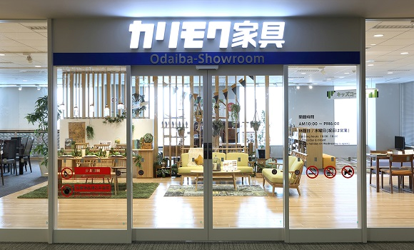 お台場のダイバーシティ東京5Fにある木製家具メーカーのショールームです。ワンフロアの展示スペースで見て触れて体感しながら、じっくりと家具選びをお楽しみいただけます。どなたでも自由にご覧いただけます。