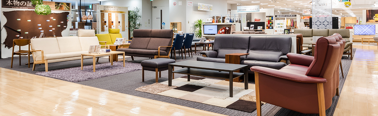 館内にはライフスタイルに合わせた様々な生活シーンをモデルルームでご提案しております。実際の空間・家具の見え方などを具体的にご体感いただけます。張地や木部のオーダーイメージを実物でご確認いただくコーナーも設けています。“ご自宅の図面”をお持ちいただくと、より具体的なサイズや色などのアドバイスも差し上げられます。