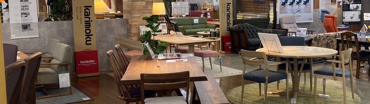 福島県では唯一の吉田家具店「カリモクギャラリー」ではカリモク家具のダイニングセット、ソファ、パーソナルチェアなど人気のある商品を中心に多数の展示がございます。