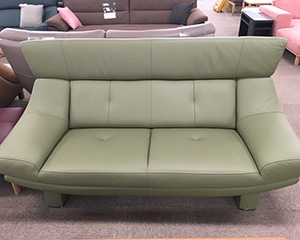 頭・腰・お尻の3点をしっかり支えるハイバック構造の革張りソファーです。スタイリッシュさにこだわり作り込まれたデザインは、どの角度からみても美しく、革色の鮮やかさも相まって、リビングルームの主役間違い無しの逸品です。