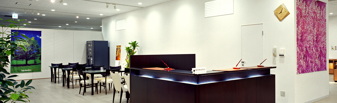 関西圏唯一のカリモクアウトレット施設です。どなたでも自由にご覧いただけます。まずは1階受付へお越しください。