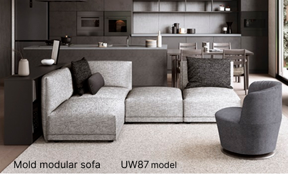 多彩な木部色・張地をお選びいただけるオーダーメニューの中でも、今人気の高いシアー色のコーディネートを体感いただけます。ナチュラルな無彩色が、モダンなインテリアづくりに最適。お客様のお好みのお部屋作りのお手伝いをいたします。