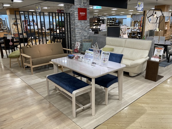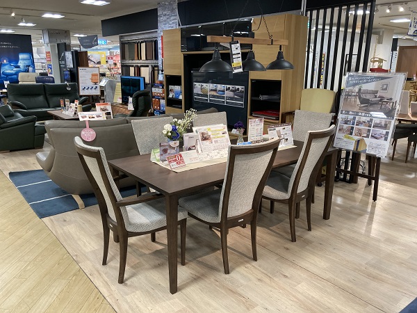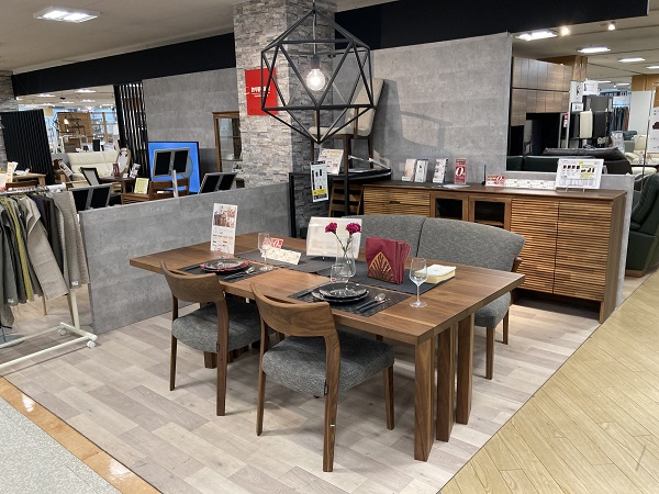 ソファとダイニングでカラーを揃えたり、TVボードと同じ塗装色のテーブルを合わせてみたり、さまざまなコーディネート空間をご体感頂けます。