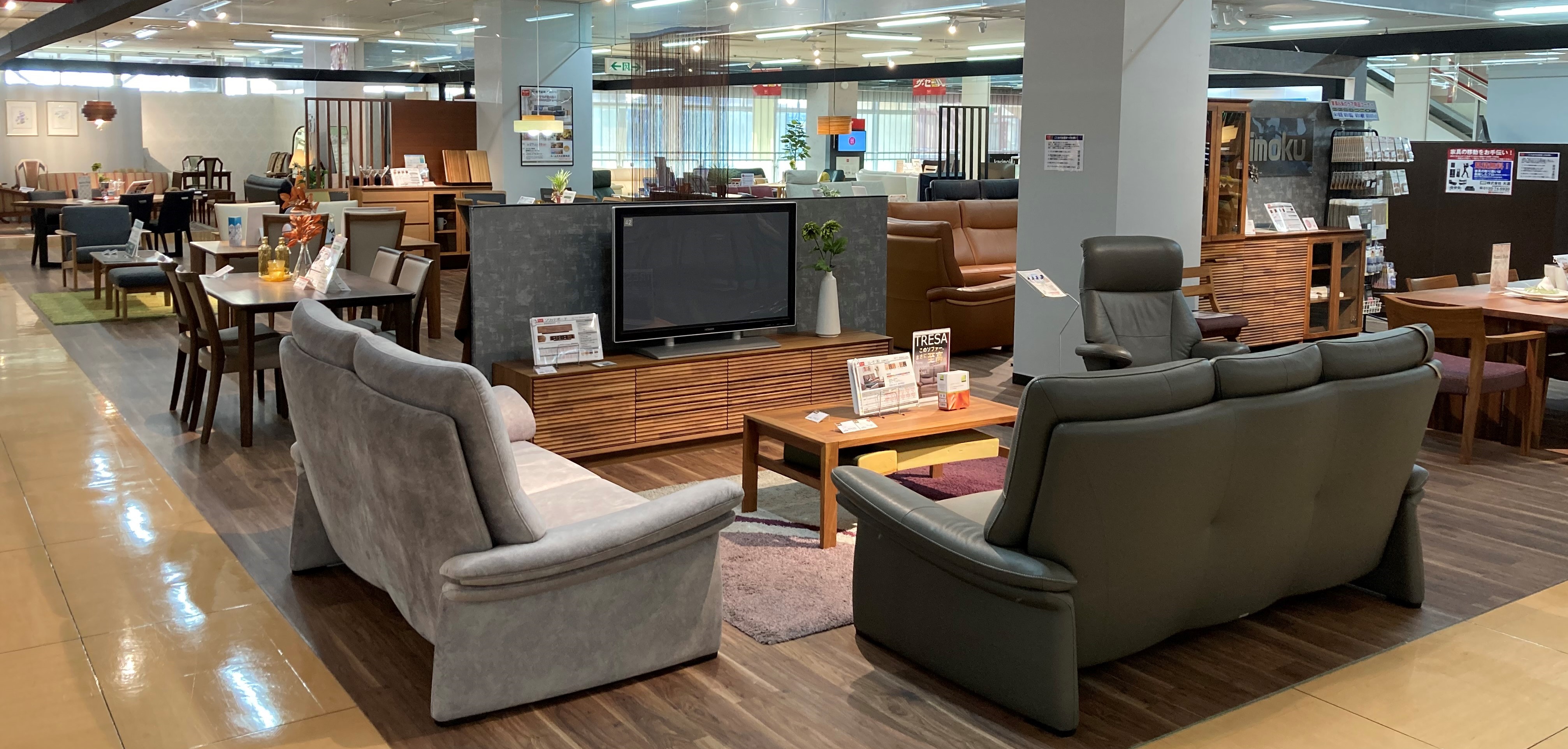 お部屋のスペースやコーディネートが体感できるギャラリーです。座り心地研究の椅子やコンパクトソファーでぴったりの椅子をご提案いたします。また、家具修理も承りますのでお気軽にご相談ください。