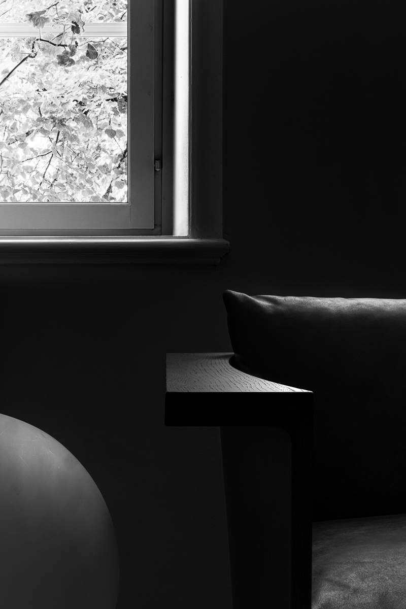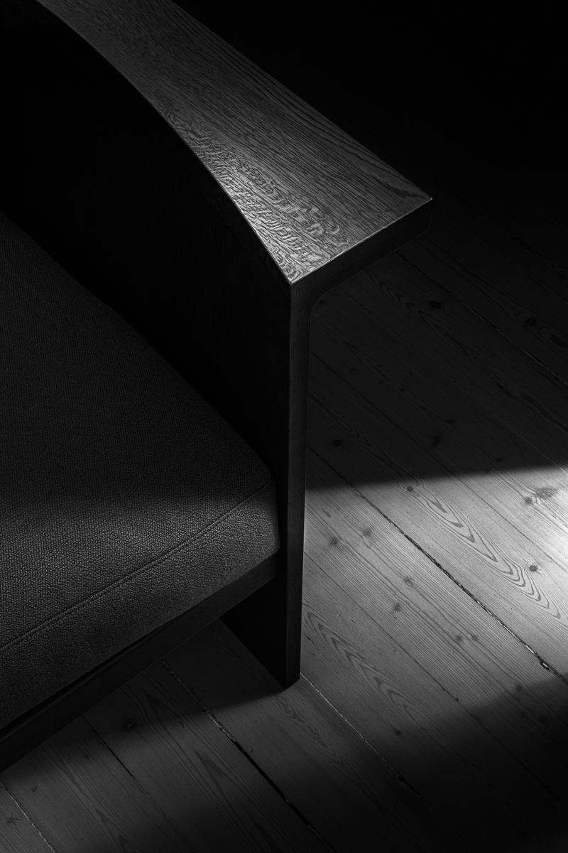 パレンテスソファは長く使うことを前提に、将来パーツでの買い替えも可能でメンテナンスが容易な置きクッションとし、日本の狭小住宅やマンションに搬入できるノックダウン構造の頑丈な木製フレームを採用しています。木目を活かした浮造り(うづくり)加工の立体的な仕上げは、その見た目や肌触りから使う人に心地良い体験を提供します。モデル名にあるパレンテスとは丸括弧という意味であり、控えめで美しい弓なりのアームがそのように見えることから命名されました。