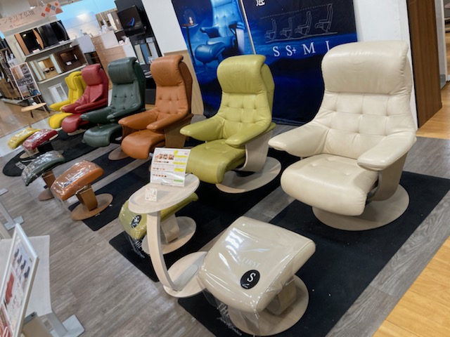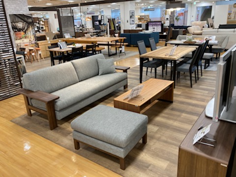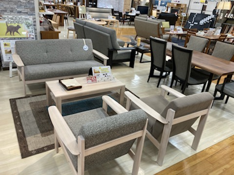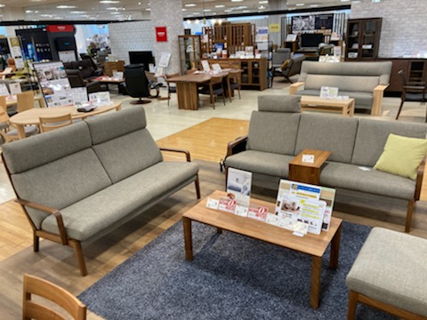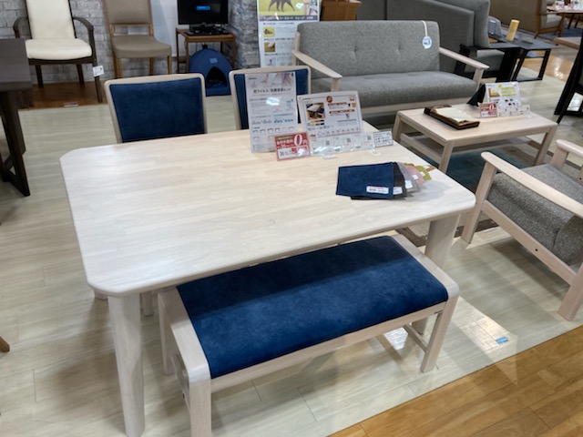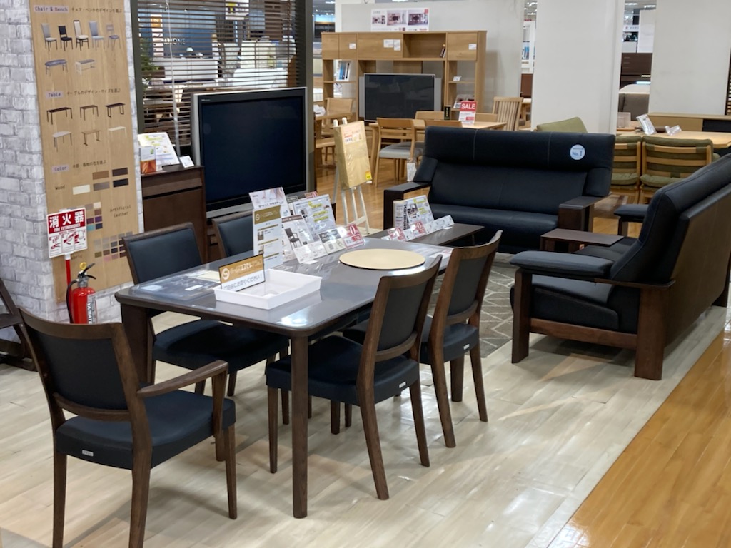 座り心地はもちろん、お掃除のしやすさを重視したソファーやダイニングの提案コーナーです。ソファは足元を開けて掃除機や今流行りのお掃除ロボット対応モデル。ダイニングは座り心地とともに軽量化を図ることで女性が片手で持てるようになっており、日々のお掃除がラクラクなモデルを取り揃えております。