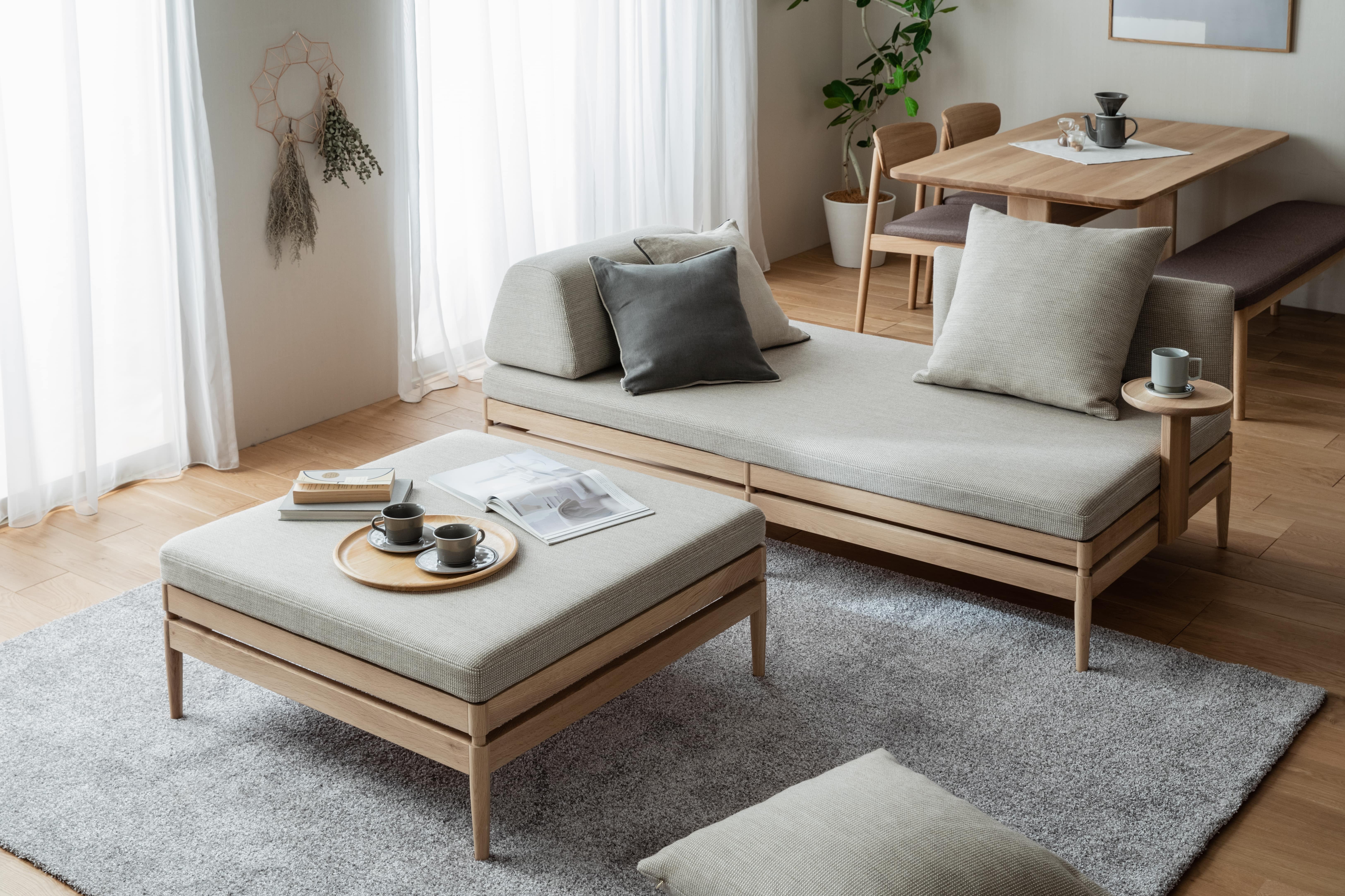 UW20モデルは、スマートフォンやタブレット中心のライフスタイルに合わせて自由にレイアウトできるソファです。フラットなシートはどの方向からもアクセスでき、置き型のモタレを使って様々にくつろぐことができます。オプションのパネルやサイドテーブルは組み合わせ自由で、ソファでの過ごし方にフィットするセッティングが可能です。シートは3Dネットを使い、反発を抑えた快適な座り心地で、メンテナンスが簡単なカバーリングタイプを採用いたしました。