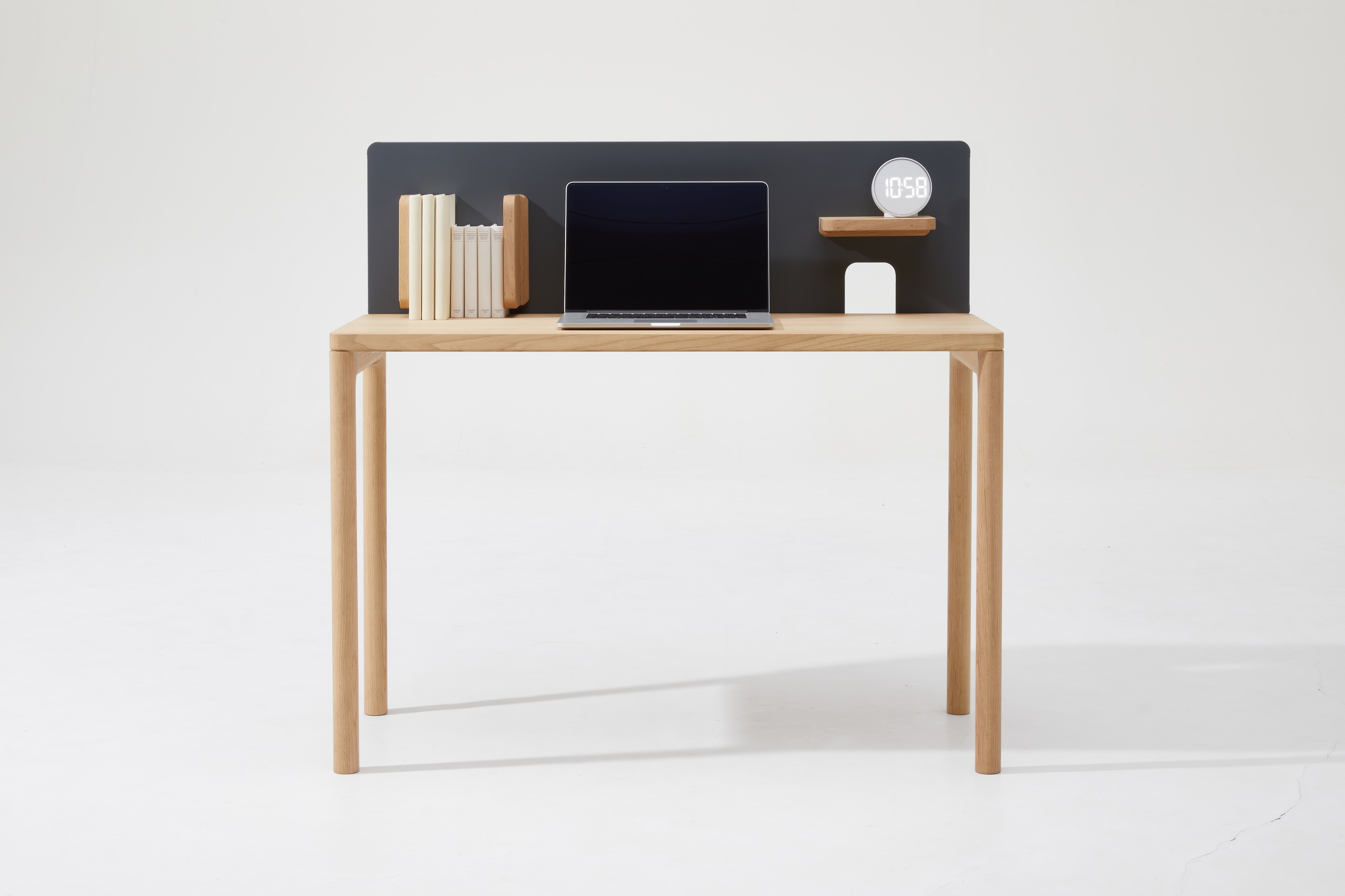 SW80モデルは、テレワークのためのデスクです。従来の大がかりなPC機器は使われなくなり、仕事道具の主流は、コンパクトなノート型に、スマートフォンやワイヤレスイヤホンへと変化しました。SW80はそれらをつなぐコードやケーブル類を簡単に収納でき、快適なデスクトップ環境を作ることができます。オフィスツールのような機能を持ちつつ、本体は幕板や桟のないスッキリしたデザインで仕上げ、自宅での快適性やインテリア性を両立し、今までにないワークスペースを作ることができます。